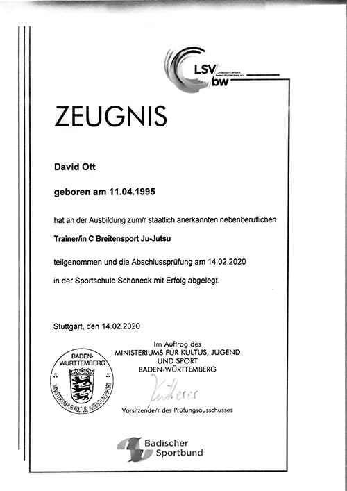 Schon mit 18 Jahren habe ich begonnen nebenbei als Trainer zu arbeiten, um die selben Werte weiter zu geben wegen denen ich den Sport liebe. 2020 habe ich beim Badischen Sport Bund eine Ausbildung zur Trainer-C Lizenz absolviert Durch den Sport habe ich früh, wichtige Werte wie Respekt, Offenheit und Disziplin gelernt. Die Struktur durch das regelmäßige Training und das Trainieren auf immer neue Ziele hat mir gezeigt, dass es sich lohnt für seine Pläne zu kämpfen, was mir später auch in der Schule und im Berufsleben geholfen hat.